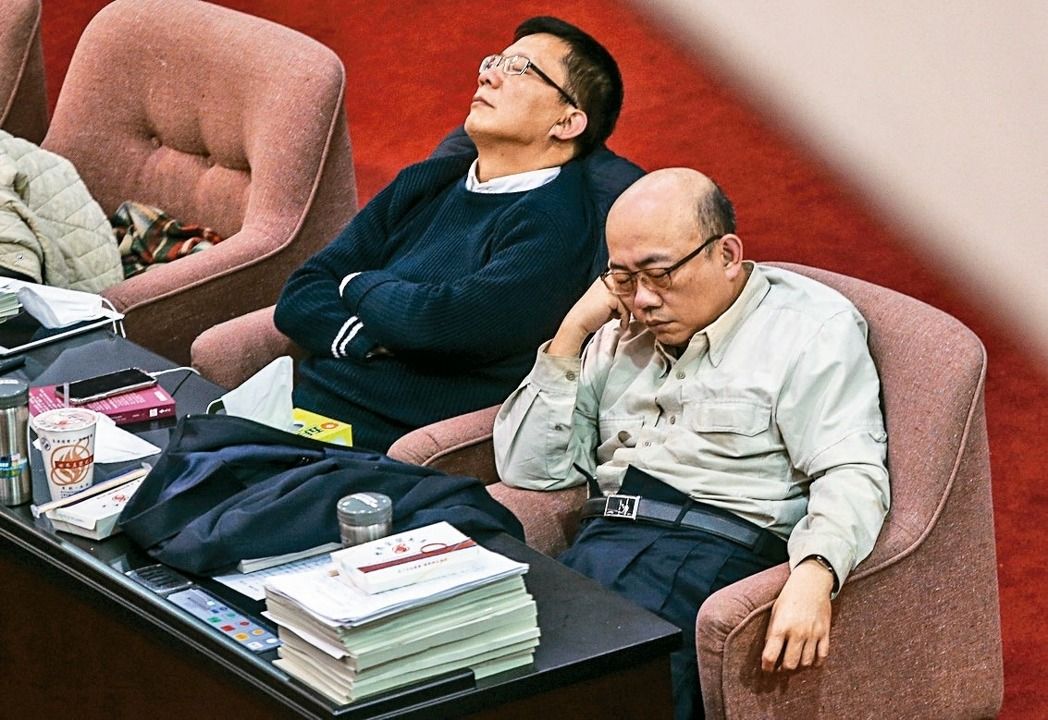 以此次“立法院”臨時(shí)會(huì)而言,在野黨為了對(duì)抗執(zhí)政黨的“人數(shù)暴力”,只能以不斷登記發(fā)言方式來拖延。負(fù)責(zé)當(dāng)舉手部隊(duì)的執(zhí)政黨“立委”,只要在表決時(shí)醒來按鈕就好,因此面對(duì)漫漫長夜,睡成一團(tuán)也不太令人訝異。不過部分“立委”甚至嫌坐著睡不舒服,甚至把躺椅搬進(jìn)議場內(nèi)。