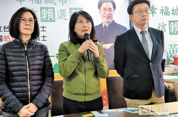 黃偉哲妻子劉育菁(中)。(圖片來源:臺灣《中時電子報》)