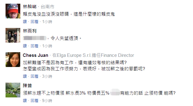 但賴清德聲稱,去年多數民眾薪水有調漲,尤其軍公教加薪后,更帶動私人企業加薪。雖然王一度打岔說“問題是老百姓沒有這種感受啊?”賴仍繼續說,“根據調查是有的,比例是在5成以上”。