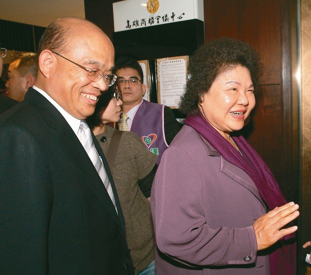 陳菊(右)與蘇貞昌(左)。(圖片來(lái)源:臺(tái)灣《聯(lián)合報(bào)》)