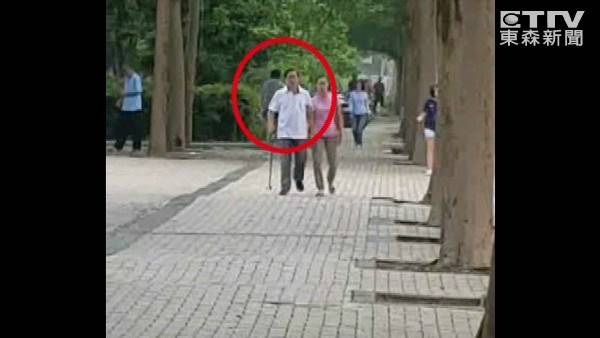 陳水扁被拍到在看護陪同下悠閑散步,“跟正常人一樣”。(圖片來源:臺灣“東森新聞云”)