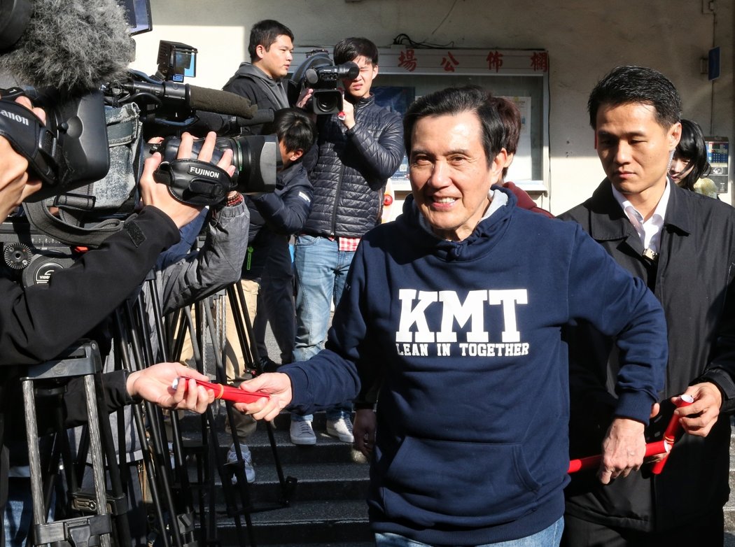 馬英九小年夜穿“KMT帽T”買菜及初一拜年時穿著公開亮相,讓KMT帽T大熱,一件790元新臺幣的帽T賣到缺貨。(圖片來源:臺灣《聯合報》)