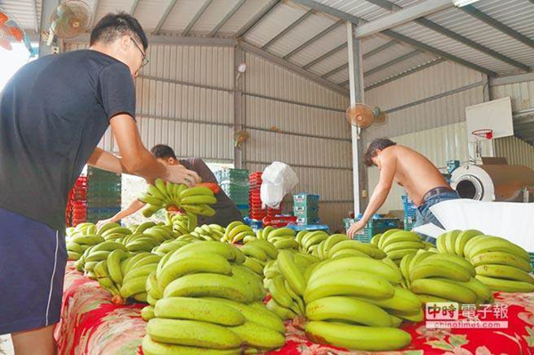 圖為蕉農忙著整理香蕉。(圖片來源:臺灣《中時電子報》)