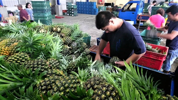 嘉義縣鳳梨斤年產量增加,單一合作社每天進貨達10萬臺斤以上,農民直言每臺斤均價低于4元完全不符成本。(圖片來源:臺灣《聯合報》)