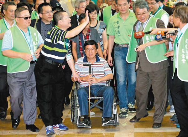 陳水扁參加兒子陳致中選造勢晚會。(圖片來源:臺灣《聯合報》)