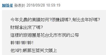 臺北市府官員表示,北農(nóng)今年以來營利狀況呈現(xiàn)衰退,不過對于董事會的參訪行程卻比過去大手筆,12天的行程還可攜帶眷屬同行,全部由北農(nóng)買單。