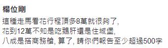 根據(jù)承攬行程的旅行社規(guī)劃,一行人來回搭長榮班機,去程從荷蘭入境,最后由法國離境。每晚住宿飯店皆安排位于市中心的4星級酒店,像是在巴黎入住4晚的拉德芳斯萬麗酒店,每晚要價8000多元。而吳音寧一行抵達荷蘭隔天即安排考察紅燈區(qū),有人質疑,未來臺灣果菜市場是要規(guī)劃結合性產(chǎn)業(yè)觀光區(qū)?