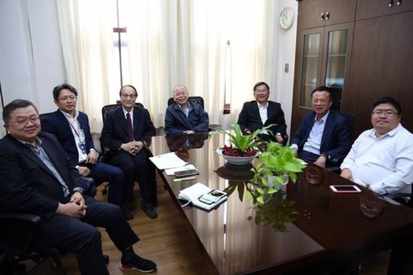 民進黨“立委”陳明文(右三)、蔡易余(右二)和嘉義縣長候選人翁章梁(右一)前往“行政院”,拜會“政務委員”張景森(左四)與臺北故宮院長陳其南(左三),討論“國寶”到臺北故宮南院。(圖片取自臺媒)