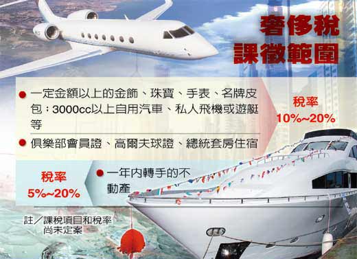 至于私人飛機(jī)或游艇,官員則說,像是鴻海集團(tuán)郭臺(tái)銘、旺旺集團(tuán)蔡衍明擁有的飛機(jī),都是登記在公司名下,“根本不可能被課到奢侈稅”。