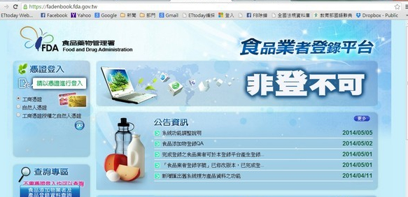 臺灣歷經塑化劑、混充油等食安問題之后,“食藥署”今年4月24日公告“食品添加物業者應辦理登錄”,并要求食品添加物制造、加工或輸入業者,自2014年5月1日起,應完成登錄,始得制造、加工或輸入。