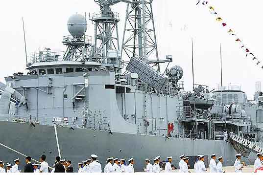 臺海軍主力戰艦不斷出現軍紀事件,圖為爆士兵砍死平民事件的鄭和軍艦。圖片來源:臺灣《蘋果日報》