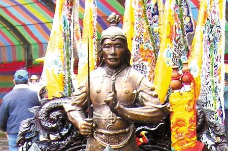 新竹縣寶山鄉(xiāng)九龍宮供奉穿古代軍裝的蔣介石,信徒還不少。圖片來源:臺灣中國時報 陳權(quán)欣 攝