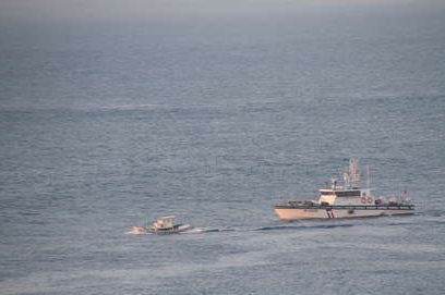 臺灣“海巡”艦艇追趕驅離誤闖入射擊區域的小漁船。圖片來源:臺灣媒體