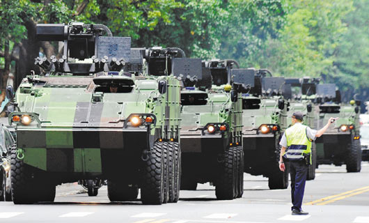 中國臺灣網(wǎng)5月29日消息 據(jù)臺灣《聯(lián)合報》報道,臺當局領(lǐng)導(dǎo)人馬英九昨天首次搭乘臺軍“云豹”裝甲車,從其辦公地點前往位于臺北市大直的“政軍指揮中心”參加“政軍兵棋推演”。