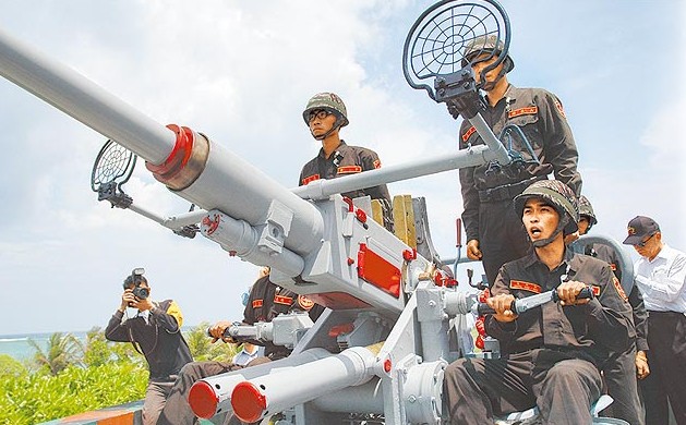 臺灣南沙太平島官兵操演情形。(臺媒圖)
