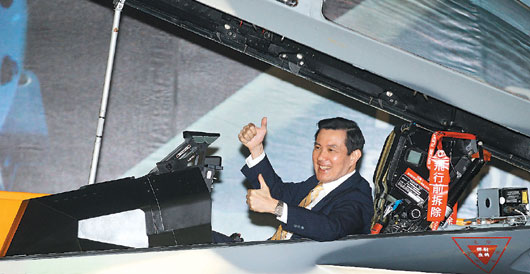 馬英九昨天上午前往臺南空軍基地,參加空軍司令部舉行第四四三聯(lián)隊(duì)“翔展項(xiàng)目接裝典禮”。圖片來源:臺灣《聯(lián)合報(bào)》