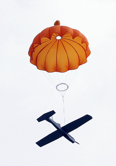 小型紅雀無人機降落時使用降落傘降落。“中央社”