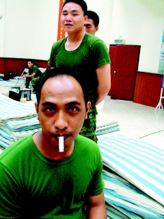 2009年8月24日,臺軍特戰(zhàn)官兵接受唾液壓力酵素檢測,口含檢測棒就能測得壓力程度。圖片來源:臺灣《聯(lián)合報》