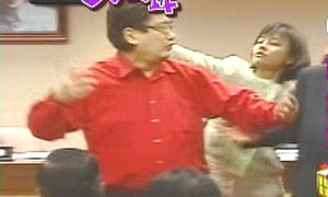 中新網4月22日電 臺灣“立法院”今天再度出現火爆場面,國民黨“立委”李慶華講話時突遭民進黨“立委”邱議瑩偷襲,被甩了一個耳光。