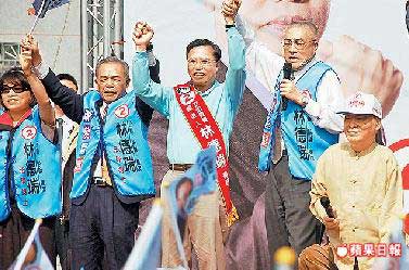 吳敦義(右2)利用假日南下嘉義縣替國民黨“立委”補選參選人林德瑞造勢。圖片來源:臺灣《蘋果日報》
