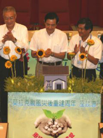馬英九以及吳敦義都參加了“莫拉克災后重建周年座談會”。馬英九說,“八八風災”所帶來的巨大雨量與造成對土地的侵害更勝已往。經過這次的學習,對于往后的災變可以預先建立相關制度,像是鄰鄉村系統、警政系統、消防系統、再來是“水利署”、“經濟部”與“農委會”等七個或八個系統,再加上防災辦公室,對于緊接的8、9月份臺風季節,采取“料敵從寬、御敵從嚴”的態度,相信可以防止災害再度發生。