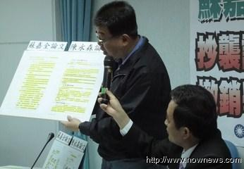 國民黨籍“立委”邱毅22日上午爆料指民進黨臺中市長候選人蘇嘉全的碩士論文涉嫌抄襲。(圖片來源:臺灣“今日新聞網” 陳思穎攝)