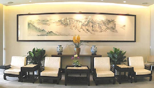 中彈的第一接待室,子彈擊中這幅山水畫畫框左下緣。圖片來源:臺灣《聯(lián)合報》