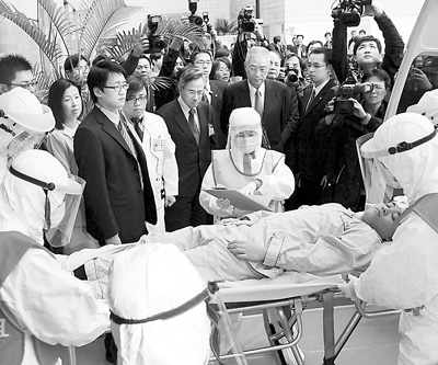 臺灣衛生主管部門日前在臺北舉行“疑似輻射傷害病患緊急醫療處置”示范演習。 符永康攝