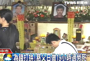 中國臺灣網4月8日消息 據臺灣東森新聞報道,為了給家人更好的生活,幫小兒子辦個風光的婚禮,臺中洪姓男子每天工作19小時,最后竟然過勞死。
