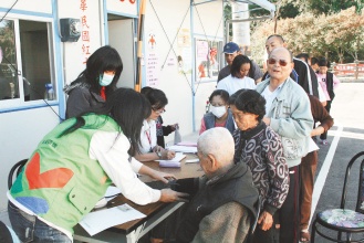 南投縣水里鄉新山悅城村102名八八風災災民,昨天率先施打甲型流感疫苗。來源:臺灣《聯合報》