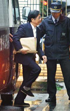“高院”上午審理扁案,陳水扁在法警陪同下進入法院。圖片來源:臺灣《聯合晚報》