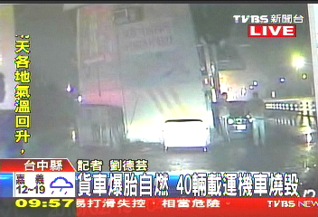 貨車在臺(tái)中縣爆胎自燃(圖:臺(tái)灣TVBS電視臺(tái))