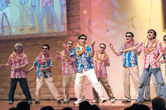 穿著五顏六色的襯衫,戴著墨鏡,幾個大男人都是“不落跑老爸”俱樂部成員,他們在舞臺載歌載舞,開心地演出。事實上,每個人背后都有心酸故事,孩子都罹患罕見疾病。(圖:臺灣《聯合報》)