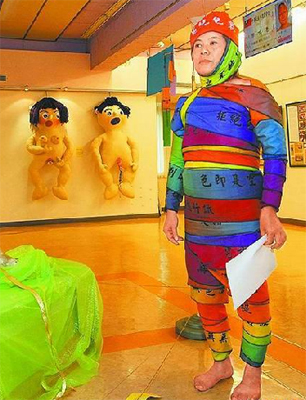 中國(guó)臺(tái)灣網(wǎng)6月21日消息 據(jù)臺(tái)灣《蘋(píng)果日?qǐng)?bào)》報(bào)道,臺(tái)灣肉販兼行為藝術(shù)表演工作者阮仁珠、呂健志酷愛(ài)裸體表演,昨日中午兩人在高雄市社會(huì)局婦女館“脫序”演出。阮仁珠以彩色絲布包裹全身,由呂健志動(dòng)手拆解,3分多鐘后全裸露出身體,高雄市社會(huì)局婦女館人員嚇得抓布飛撲替她遮掩,阮仁珠不滿指控:“社會(huì)太荒謬!錯(cuò)把裸體當(dāng)色情!”稱將拜訪高雄市長(zhǎng)陳菊并邀她看展。
