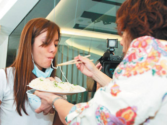 莎莎(左)22日返臺,母親趕緊送上豬腳面線壓驚。 來源:臺灣《聯(lián)合報》
