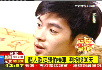據報道,歐定興去年5月試圖偷摩托車代步敗露,獲得緩起訴。但在去年年底又被控訴在夜店偷筆記本電腦,因此檢方撤銷對他的緩起訴,依竊盜罪嫌正式起訴,臺北地方法院審理后,判處歐定興拘役30日,得易科罰金。