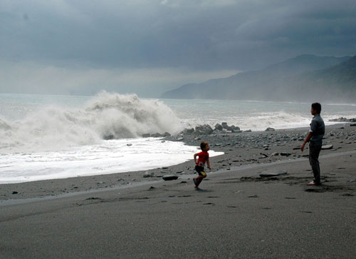 受到臺風(fēng)“鲇魚”外圍環(huán)流與東北季風(fēng)共伴效應(yīng)影響,臺東18日上午出現(xiàn)晴天巨浪,岸邊掀起10幾米高的浪花。圖片來源:“中央社”