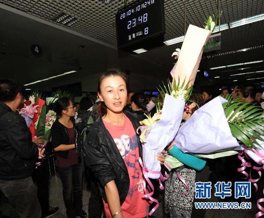 10月24日,部分在臺受困游客安全抵達昆明。當日23時許,因遭遇臺風“鲇魚”襲擊被困臺灣的31名云南籍游客和1名領隊,以及100余名行程受阻的游客平安飛抵昆明。新華社記者楊宗友攝