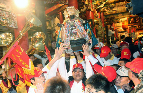 新港奉天宮開臺(tái)媽祖于9日晚上6時(shí)起駕,展開為期9天8夜的繞境,將走過13鄉(xiāng)鎮(zhèn)、100間廟宇為嘉南平原這塊土地祈福;“立法院長”王金平、嘉義縣長張花冠、嘉義市長黃敏惠、國民黨籍“立委”翁重鈞、民進(jìn)黨籍“立委”陳明文等人皆到場徒步扶轎。