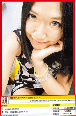臺灣一美女拍賣自己做情人節女友 以10億天價結標