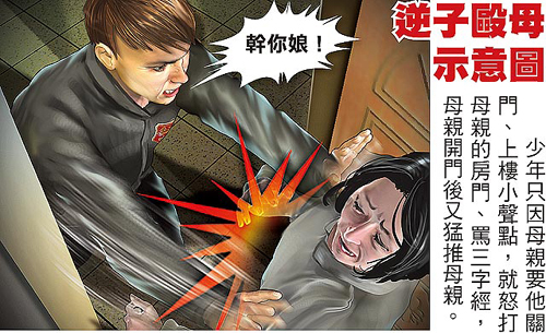 陳姓少年則向警方說,媽媽一直碎碎念,希望她閉嘴,媽媽還禁止他用計算機和手機,還趕他出門。陳姓少年說:“我無法控制情緒,從小爸媽就是這樣大吵,我也這樣,但以后我不會了!