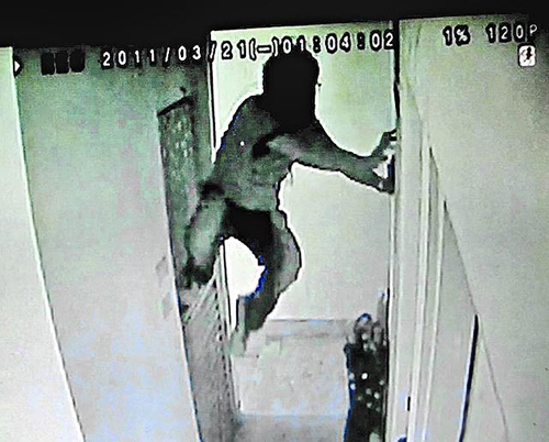 監視器拍下徐文彥爬進前女友住處,并在墻上留下辱罵字眼。圖片來源:臺灣媒體