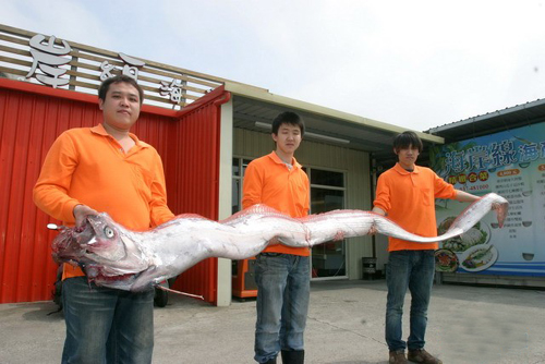 餐廳賴姓廚師說,這尾皇帶魚是龍鳳漁港首次捕獲,可能是日本大地震后,逃難才迷途游到臺灣海峽來,也或許臺灣也要發生大地震了。(中國臺灣網 馮江)