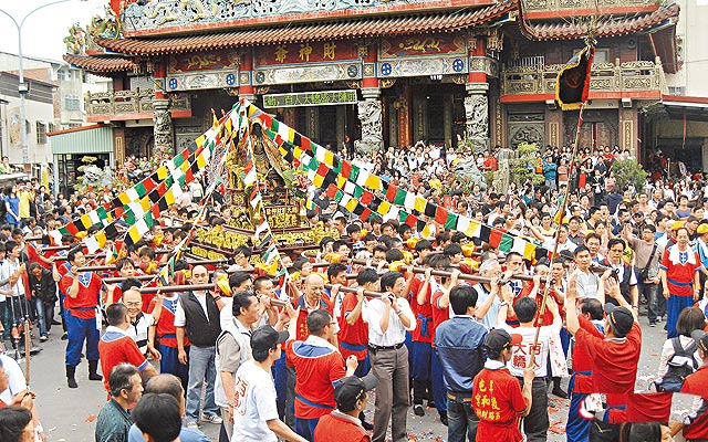 臺灣慶財神爺生日 百名壯漢抬888公斤神轎走場(圖)