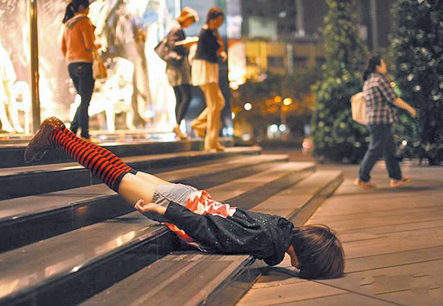 仆街少女的“怪異”行為藝術。圖片來源:臺灣“今日新聞網”