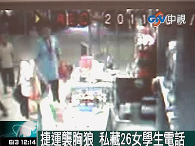 據報道,新北市捷運站最近有恐怖襲胸狼出沒,一名中年男子專挑學生妹搭訕,不但碰觸對方胸部、私處,還強行取得對方電話號碼,不斷騷擾邀約。在監視器畫面中,這名男子在捷運站超商門口徘徊,不時對著店里的女學生招手,一名高中女學生不從,男子竟然走進店里強拉對方出來,所幸女學生的家人就在超商外面,男子見情況不對轉身落跑。