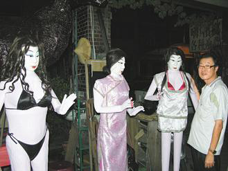 陳姓男子車禍過世,他的好友花了7萬多元新臺幣,請紙糊師傅為他制作3個辣妹火化給他,分別是比基尼女郎、旗袍妹及制服妹。圖片來源:臺灣《聯(lián)合報》