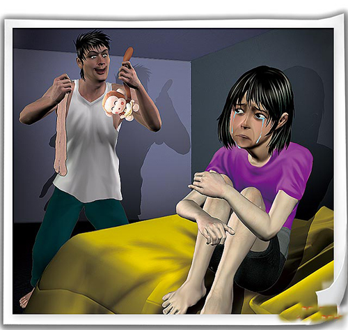 獸父還會親摸女兒大腿幫她穿上肉色絲襪,然后播A片叫女兒模仿劇情幫他口交,等他性致高昂時,就扯開絲襪拿剪刀把褲底剪破,直接性侵女兒。獸父甚至曾變態地拿猴子布偶,把保險套套在猴子尾巴上插進女兒下體。