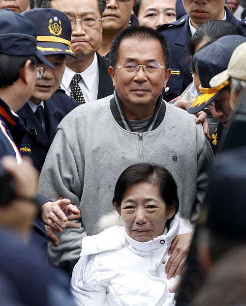 中國(guó)臺(tái)灣網(wǎng)1月6日消息 據(jù)臺(tái)灣媒體報(bào)道,前臺(tái)灣地區(qū)領(lǐng)導(dǎo)人陳水扁今天上午清晨6時(shí)許,在臺(tái)北監(jiān)獄獄所人員戒護(hù)下,搭乘警備車前往臺(tái)南新營(yíng)殯儀館奔喪,未上手銬、腳鐐也未穿囚衣。原本臺(tái)當(dāng)局法務(wù)主管部門要求陳水扁只能在場(chǎng)停留1小時(shí),但陳水扁今天在上午11時(shí)02分左右離開殯儀館,在岳母吳王霞的靈前待了逾2個(gè)小時(shí)。