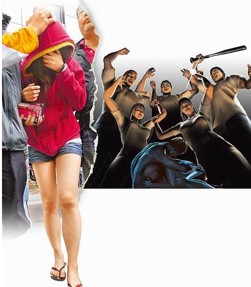 過程中女大學生奮力反抗,李男、朱男隨即將女大學生痛毆倒地,還以鋁棒打傷其右眼,李男甚至恐嚇:“如果你再不起來,就要打死你。”隨后與朱男將女大學生架起拖往花圃強脫衣物,鐘姓少女和林姓少女等則圍觀嘻笑。